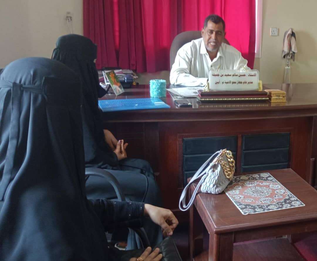 التقى الاستاذ حسين بن جميلة مدير محو الامية وتعليم الكبار بمحافظة أبين صباح اليوم الثلاثاء بمكتبة رئيسة جمعية خديجه بنت خويلد الاستاذه صفية المليح