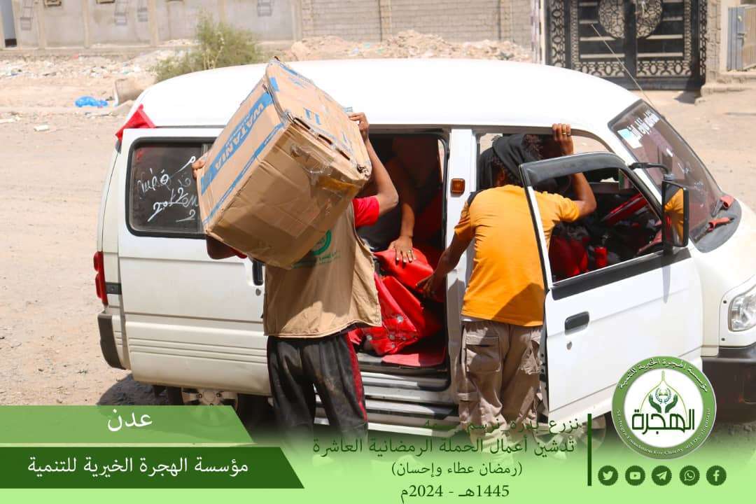 دشنت مؤسسة الهجرة الخيرية للتنمية بالعاصمة عدن الحملة الرمضانية في عامها العاشر على التوالي (رمضان عطاء وإحسان) ١٤٤٥هـ - 2024م ، من منتصف شهر شعبان حتى أواخر شهر رمضان الكريم .