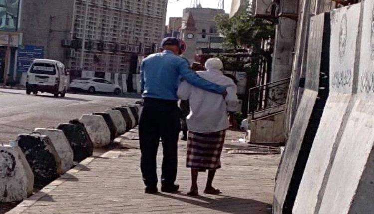 اظهرت صورة تم التقاطها في كريتر امس رجل مرور وهو يقوم بمساعدة رجل مسن على تجاوز طريق فرعية بالقرب من ساحة البنوك.
