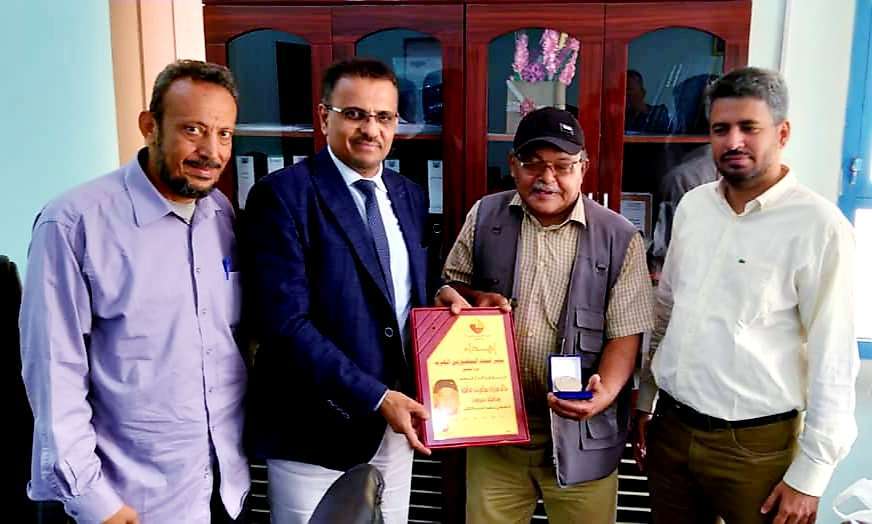 كما قام الاستاذ/ عبدالله العوبثاني، مدير عام مكتب وزارة الزراعة والري والثروة السمكية بالمحافظة، وعضو الأمانة العامة للإتحاد المصورين العرب، نايف السيد حسن، بتسليم المصور الصحفي/ خالد مبارك بن عاقله، شهادة الثميز كأفضل مصور.