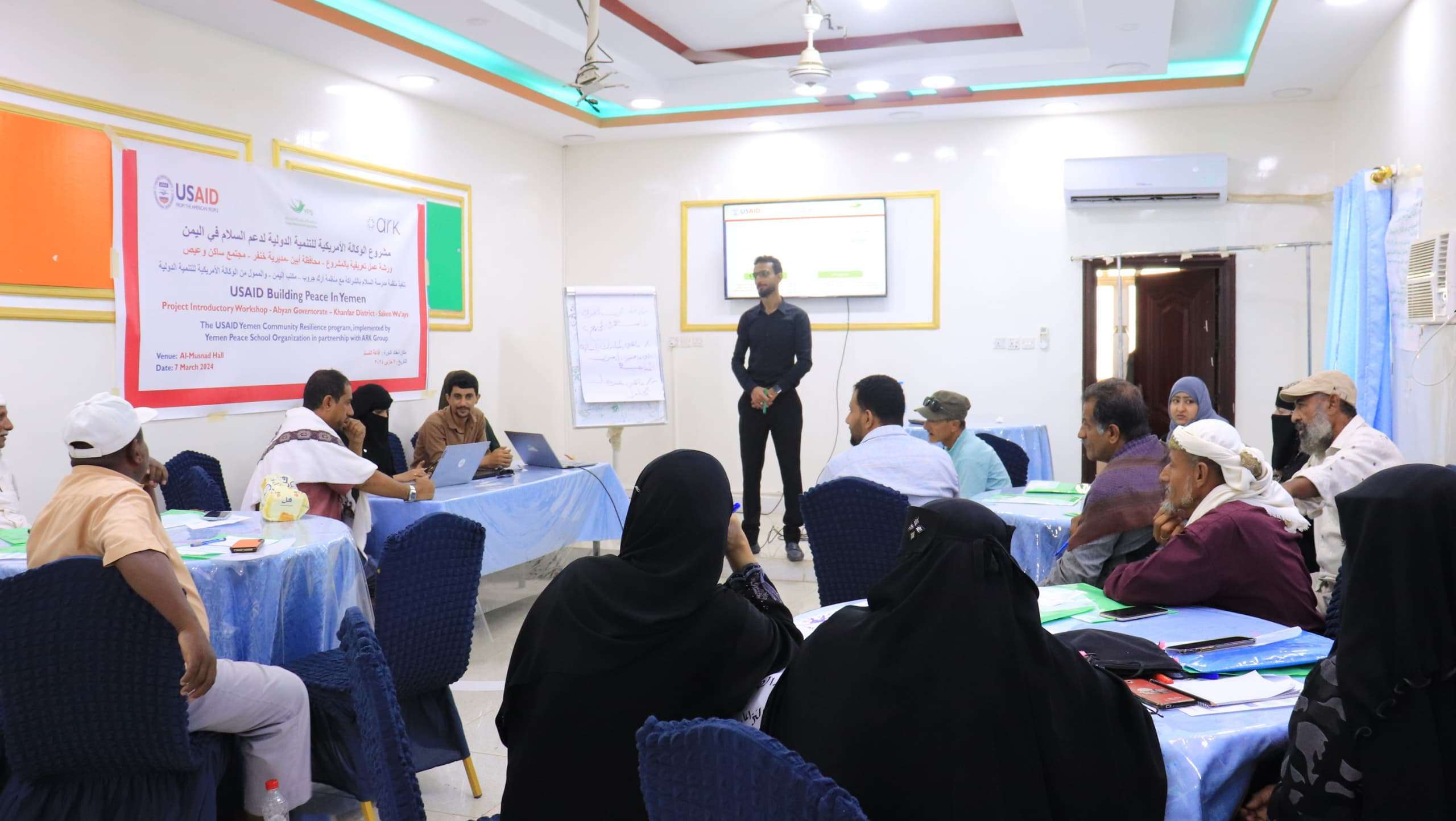 ضمن أنشطة مشروع " الوكالة الأمريكيه في بناء السلام في اليمن " الممول من الوكاله الأمريكيه للتنمية الدولية دشنت منظمة مدرسة السلام بالشراكة مع ارك جروب ،ورشة تعريفية للمشروع لدعم السلام في اليمن ،يوم الخميس الموافق 7 مارس 2024 تم خلال الورشة التعريف بكلا المنظمتين ارك جروب ومنظمة مدرسة السلام عن مجالات عملهم واهدافهم.