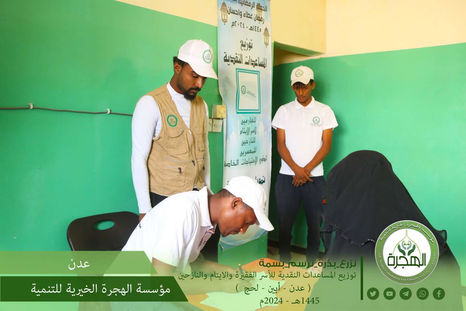 واصلت مؤسسة الهجرة الخيرية للتنمية أعمالها الرمضانية بتنفيذ مشروع المساعدات النقدية لمستحقيها والتي تنفذه كل عام بدعم وتمويل من فاعلي خير ، والذي يندرج ضمن أعمال الحملة الرمضانية العاشرة (رمضان عطاء وإحسان) من هذا العام ١٤٤٥هـ - 2024م.