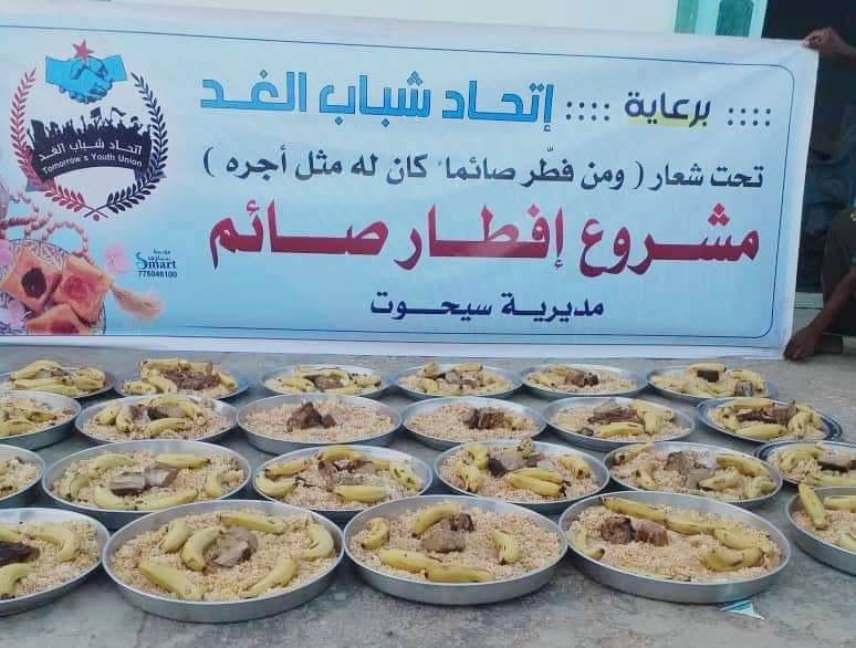 يواصل اتحاد شباب الغد اليوم السبت، توزيع وجبات إفطار صائم في عدد من مديريات محافظة المهرة لليوم العشرين في شهر رمضان المبارك.