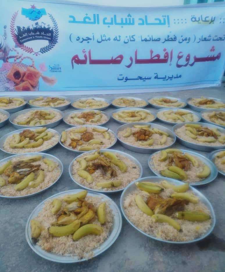 تواصل الفرق التابعة لاتحاد شباب الغد توزيع وجبات إفطار صائم في مديرية سيحوت بمحافظة المهرة.