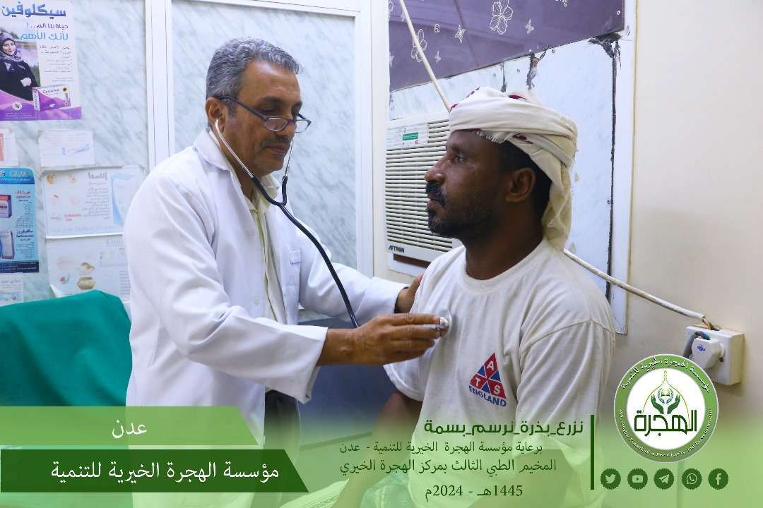 تحت رعاية وإشراف مؤسسة الهجرة الخيرية للتنمية، وضمن أعمال الحملة الرمضانية العاشرة (رمضان عطاء وإحسان) أقام مركز الهجرة الطبي الخيري في مديرية المنصورة بالعاصمة عدن - المخيم الطبي الخيري الرمضاني الثالث للعلاج داخل المركز ولمدة ثلاثة أيام متوالية ابتداء من يوم الأحد ٢١ إلى ٢٣ رمضان ١٤٤٥هـ الموافق 31 مارس إلى 2 أبريل 2024م، بمناسبة شهر رمضان الفضيل، استفاد منه قرابة 113 مريضاً من الرجال والنساء والأطفال ، وذلك بدخول المرضى للدكاترة بالمركز للمعاينة مجاناً، وخصوماتٍ بلغت أكثر من 50% في جميع الفحوصات الطبية والأدوية الصيدلانية، وخصومات 30% لجهاز الموجات فوق الصوتية.