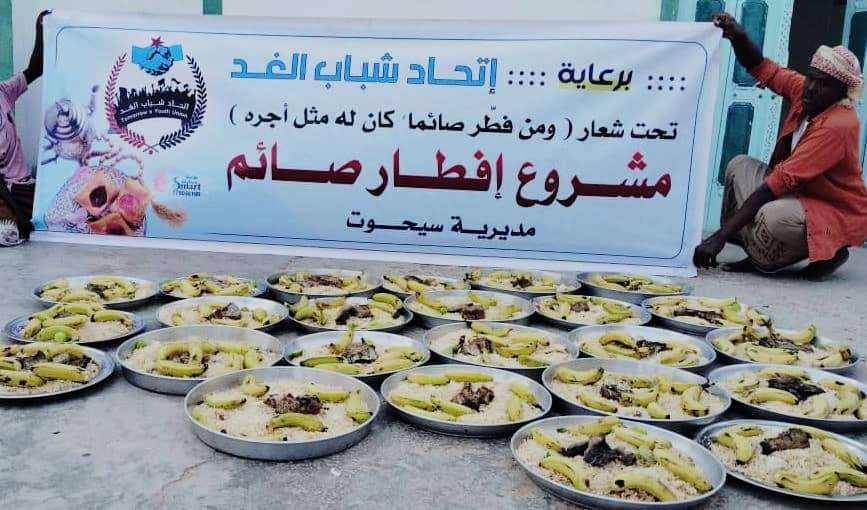 تستمر عطاءات اتحاد شباب الغد بمحافظة المهرة في مشروعها الخيري والإنساني لتعزيز أواصر المحبة بين أبناء المجتمع من خلال إفطارات صائم الجماعية التي ينفذها الاتحاد بشكل يومي طيلة أيام شهر رمضان المبارك.