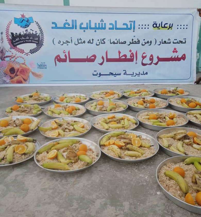 تواصل الفرق التابعة لإتحاد شباب الغد توزيع وجبات إفطار صائم في مديرية سيحوت بمحافظة المهرة.