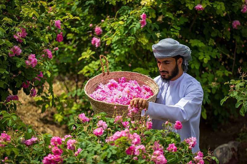 تشهد محافظة الداخلية في سلطنة عمان هذه الأيام بدء موسم حصاد الورد، ما يتيح للسياح والزوار فرصة لتجربة الطرق التقليدية والحديثة لتصنيع منتجات الورد.