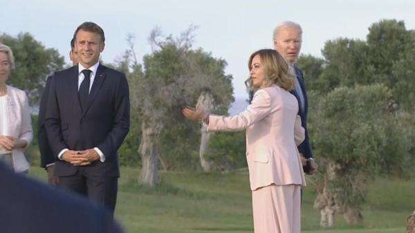 أعادت رئيسة الوزراء الإيطالية جورجيا ميلوني، الرئيس الأمريكي جو بايدن، إلى المكان المخصص لتصوير قادة قمة مجموعة السبع.