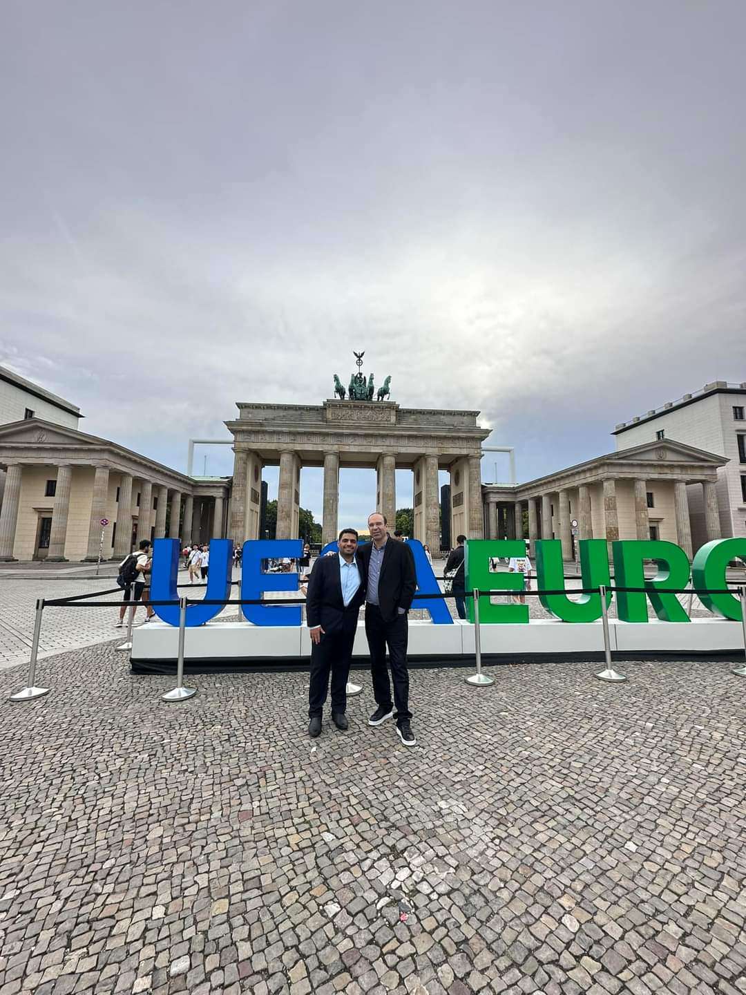حيث ظهر العيدروس بجانب المعلق التونسي الشهير عصام الشوالي في برلين استعدادا للتعليق على مباراة انجلترا واسبانيا اليوم الاحد.