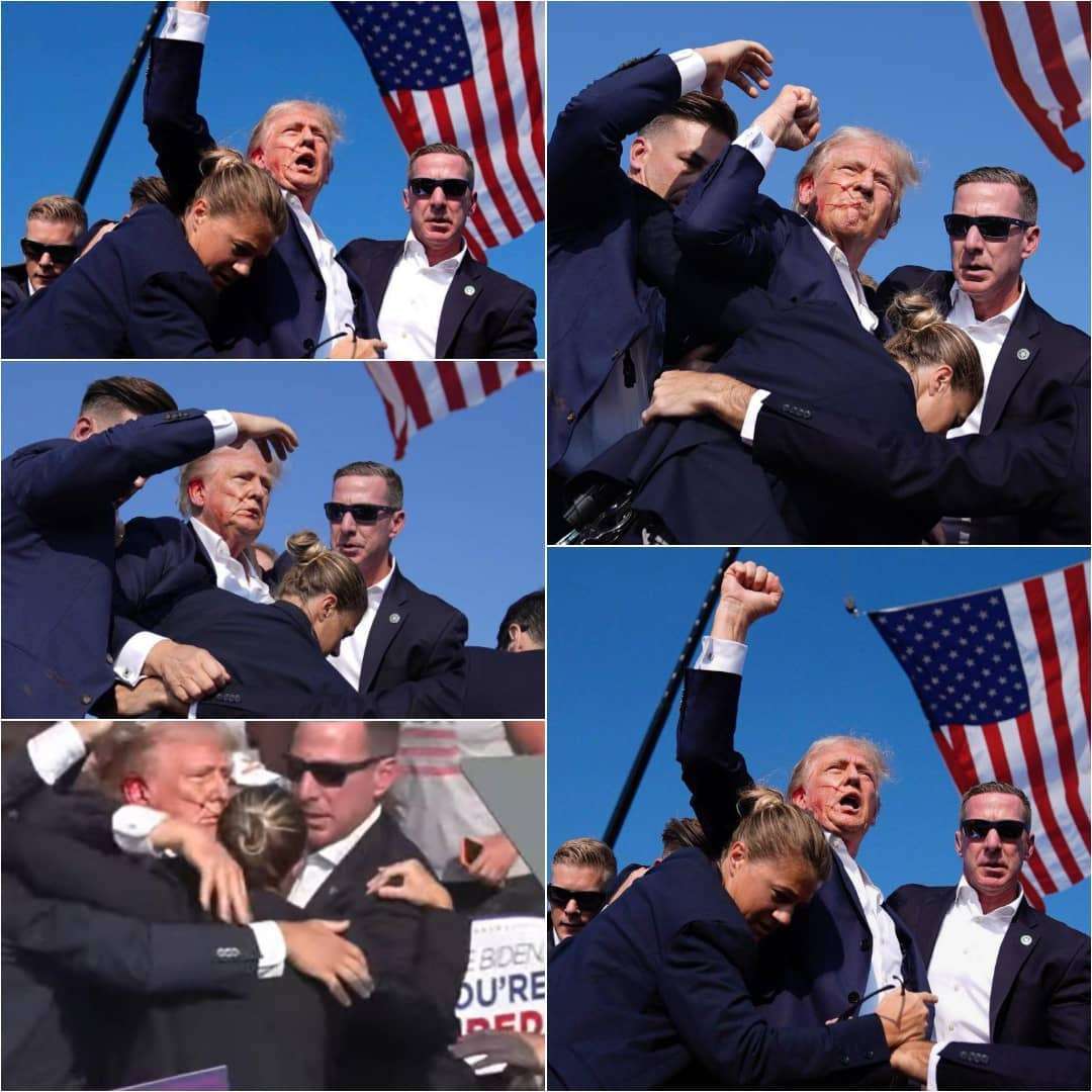 وأظهرت لقطات مصورة أفرادا من جهاز الخدمة السرية والشرطة يرافقون ترامب إلى سيارة بينما كان يرفع قبضته في الهواء.