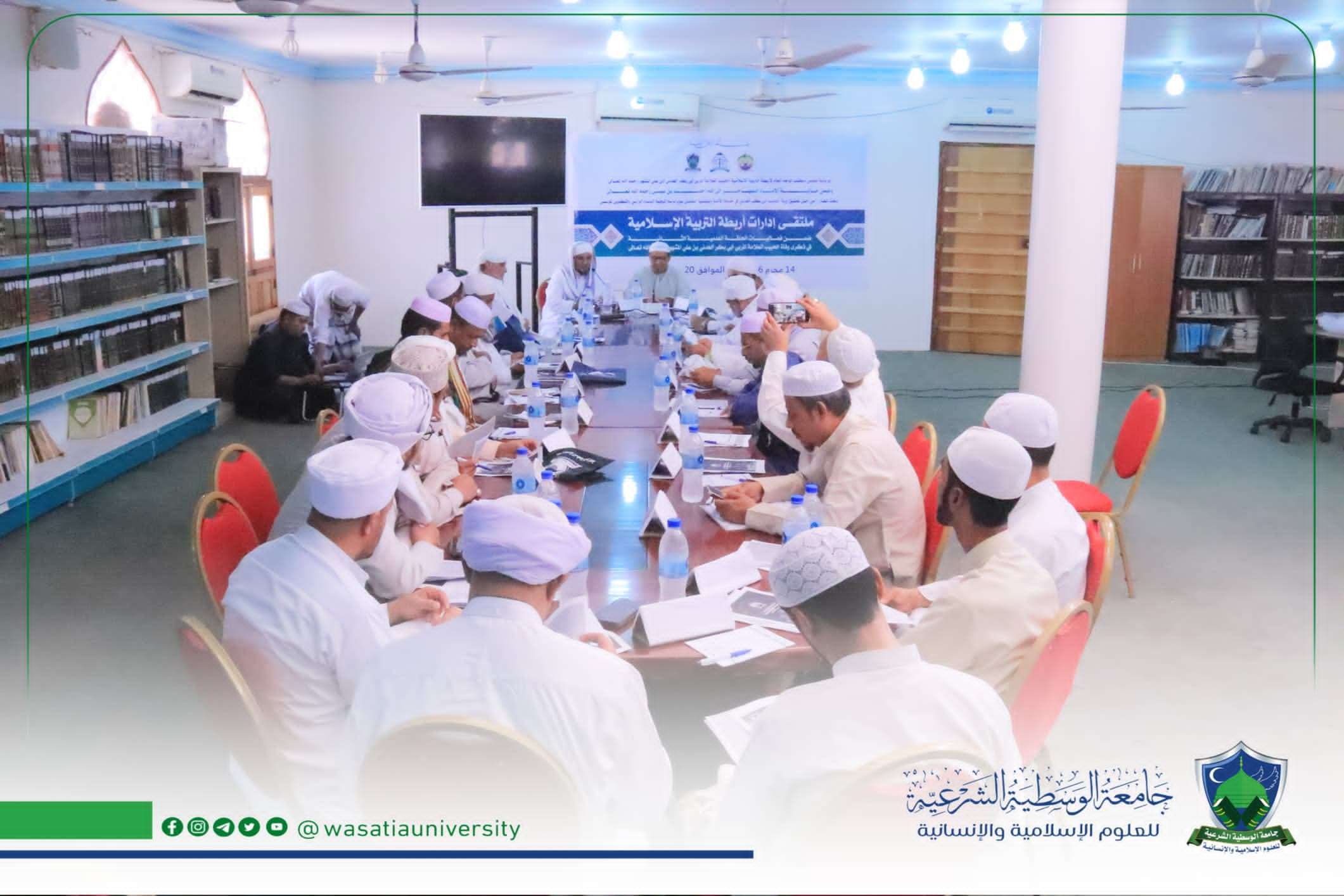 أقيم صباح اليوم السبت الموافق ٢٠ يوليو ٢٠٢٤م بالمكتبة العلمية بشِعب الإمام المهاجر بسيئون، ملتقى إدارات أربطة التربية الإسلامية، ضمن حولية الإمام المهاجر إلى الله أحمد بن عيسى - رحمه الله تعالى ، والحلقة العلمية الثانية في ذكرى وفاة المفكر الإسلامي الحبيب المربي العلامة أبي بكر العدني بن علي المشهور رحمه الله تعالى تحت شعار : " من أجل تحقيق رؤية الحبيب أبي بكر العدني في خدمة الأمة ونهضتها لنعمل سويًا باستراتيجية البناء الرأسي والتكوين المؤسسي " برعاية مجلس مكتب الموجه العام لأربطة التربية الإسلامية.