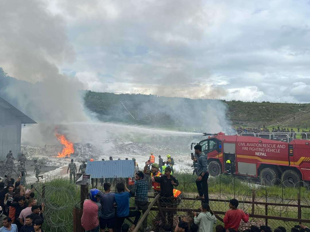 وأظهرت صور للحادث نشرها الجيش النيبالي جسم الطائرة منقسما ومحترقا وبدا نحو عشرة جنود وهم يقفون فوق الحطام فيما غطت مواد إخماد الحرائق المكان.