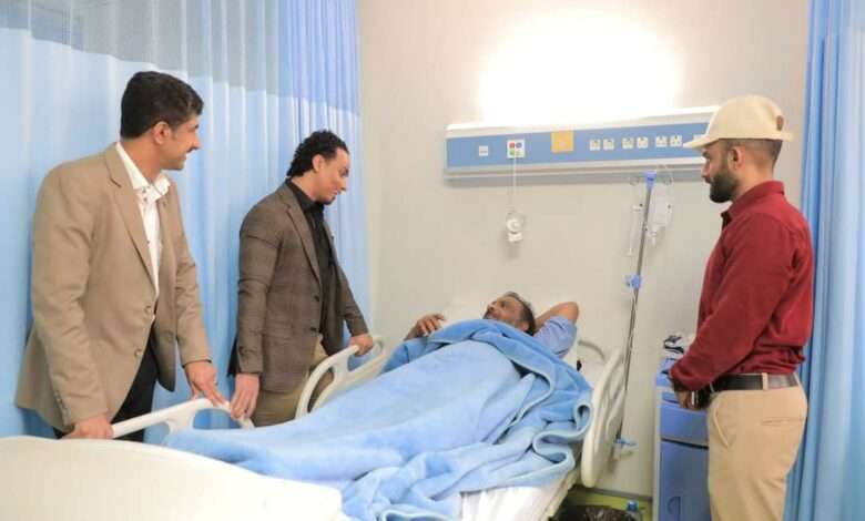 وفي ختام الزيارة، التي شارك فيها الدكتور محمود بن جرادي مدير عام مديرية صيرة، تمنى السقاف والحوشبي للمكعبي بالشفاء العاجل سائلين المولى أن يلبسه ثوب الصحة والعافية ليعود إلى أسرته وجمهوره سالما معافى.