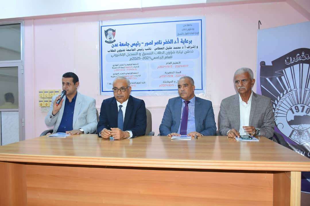 من جانبه قال الأستاذ الدكتور/ محمد عقيل العطاس نائب رئيس الجامعة لشؤون الطلاب أن نيابة شؤون الطلاب بالجامعة قد هيأت كافة الإمكانات والظروف الملائمة لاستقبال الطلاب الراغبين في الالتحاق بجامعة عدن وقد أنجزت كافة الترتيبات الفنية لانطلاق هذه العملية، مؤكداً حرص الجامعة على تسهيل إجراءات عملية القبول والتسجيل في مبنى نيابة شؤون الطلاب، أو باستخدام الموقع الالكتروني الذي سيسهل للطلاب التسجيل من أي مكان في العالم، مؤكداً أن نيابة شؤون الطلاب أنجزت كامل شهادات التخرج للعام الجامعي 2022/2023م معبراً عن شكره لكل الطاقم الإداري في إدارة القبول والتسجيل لجهودهم الكبيرة.