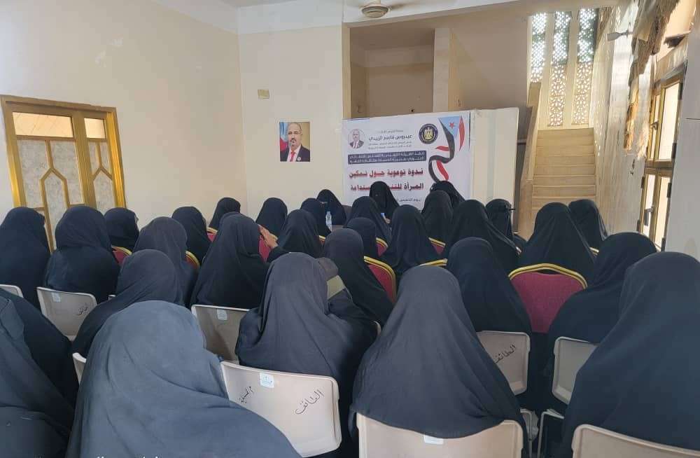 نظم قسم المرأة والطفل بالهيئة التنفيذية للقيادة المحلية للمجلس الانتقالي الجنوبي بمديرية المسيلة محافظة المهرة، امس الأحد، ندوة بعنوان "تمكين المرأة في التنمية المستدامة" للناشطات في المديرية.