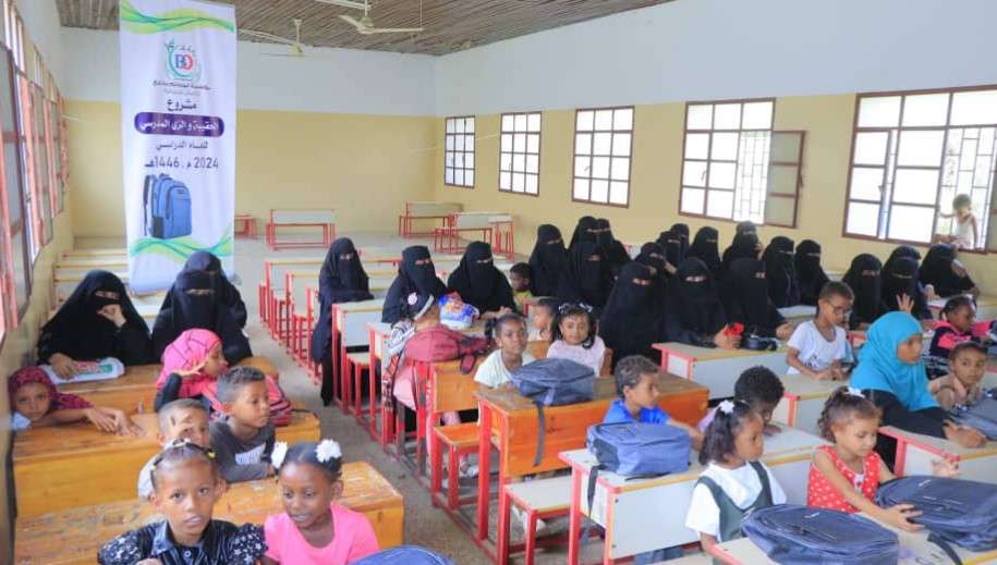 دشن صباح اليوم الخميس بمحافظة أبين مديرية خنفر منطقة الحصن مشروع توزيع الزي والحقيبة المدرسية المدعوم من قبل مؤسسة أبو حاتم بانافع للأعمال الإنسانية بحضور فريق عمل من المؤسسة ممثل بالأستاذ علاء باجميل مدير المشاريع