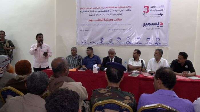 شهدت مدينة الخوخة العاصمة الإدارية المؤقتة لمحافظة الحديدة، حفل إشهار كتاب وصايا الخُلود الصادر عن وكالة "2 ديسمبر" الإخبارية.