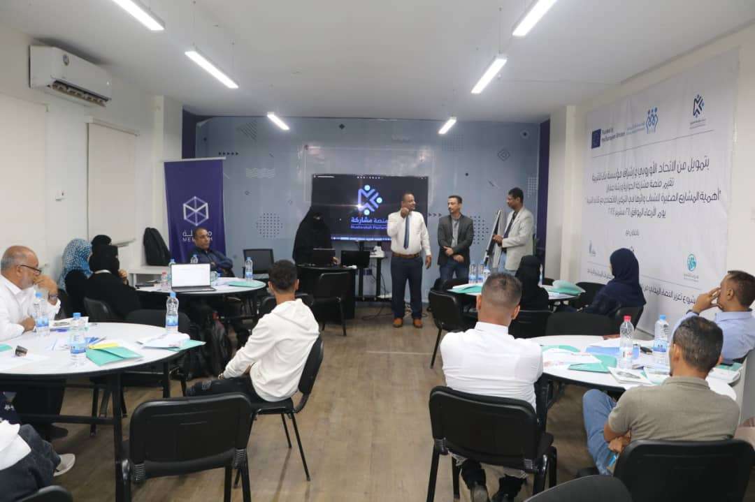اقامت منصة مشاركة الحوارية اليوم،ورشة عمل بعنوان "أهمية المشاريع الصغيرة للشباب وأثرها في التمكين الاقتصادي مع ثلاثي التنمية"بتمويل من الإتحاد الأوروبي وإشراف مؤسسة بناء للتنمية وبالتعاون مع ثلاث مؤسسات "قدرات التنمية ومظلة ويماني للتنمية والأعمال الإنسانية".