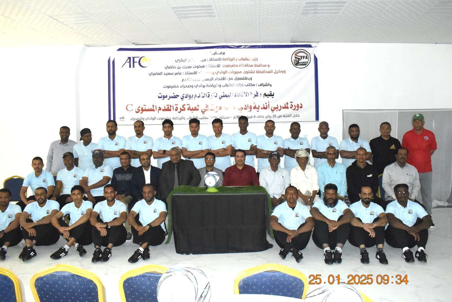 بدأت اليوم بمدينة سيئون الدورة التدريبية لمدربي اندية حضرموت الوادي لكرة القدم، ينظمها فرع الاتحاد لكرة القدم بالوادي والصحراء، برعاية معالي وزير الشباب والرياضة الأستاذ نائف البكري ومحافظ محافظة حضرموت الأستاذ مبخوت مبارك بن ماضي ووكيل المحافظة لشئون مديريات الوادي والصحراء الأستاذ عامر سعيد العامري، بالتنسيق مع الاتحاد اليمني لكرة القدم وبأشراف مكتب وزارة الشباب والرياضة بالوادي والصحراء.