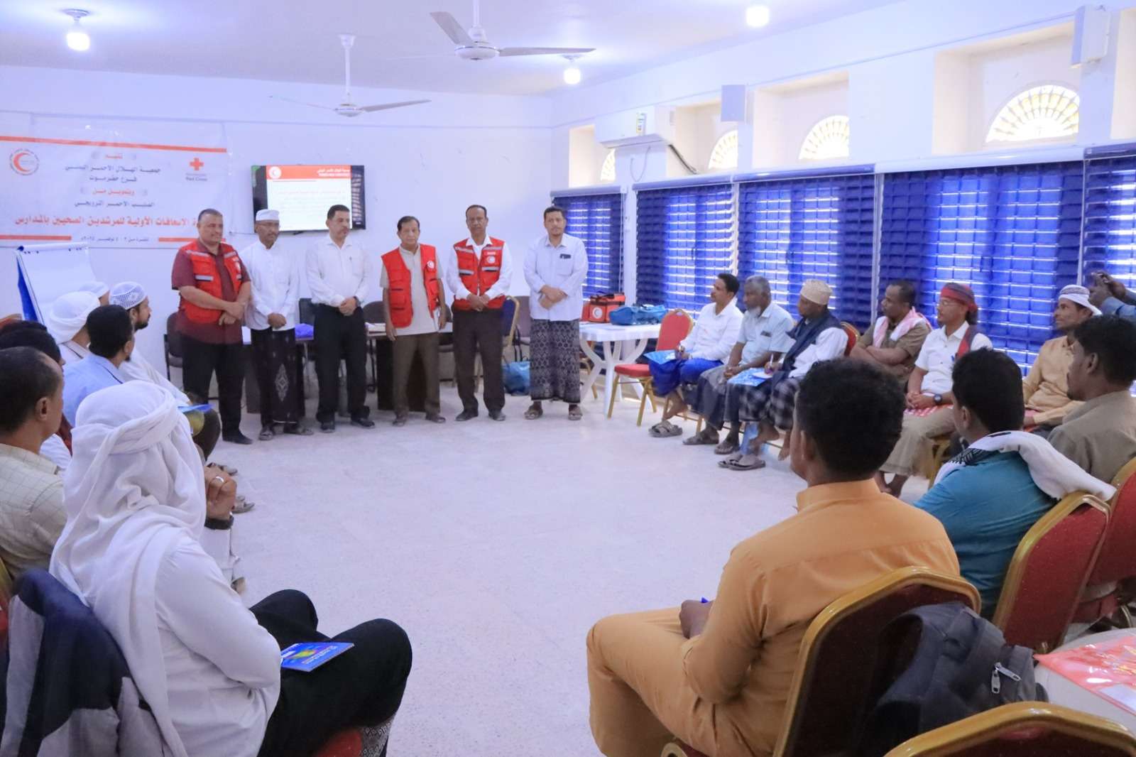 وسيتلقى 50 معلما ومعلمة على مدى ثلاثة أيام، تم توزيعهم على قاعتين معلومات ومفاهيم ومهارات وخبرات نظرية وتطبيقية من قبل مدربي ومدربات من الكوادر المؤهلة من فرع الهلال الأحمر بحضرموت.