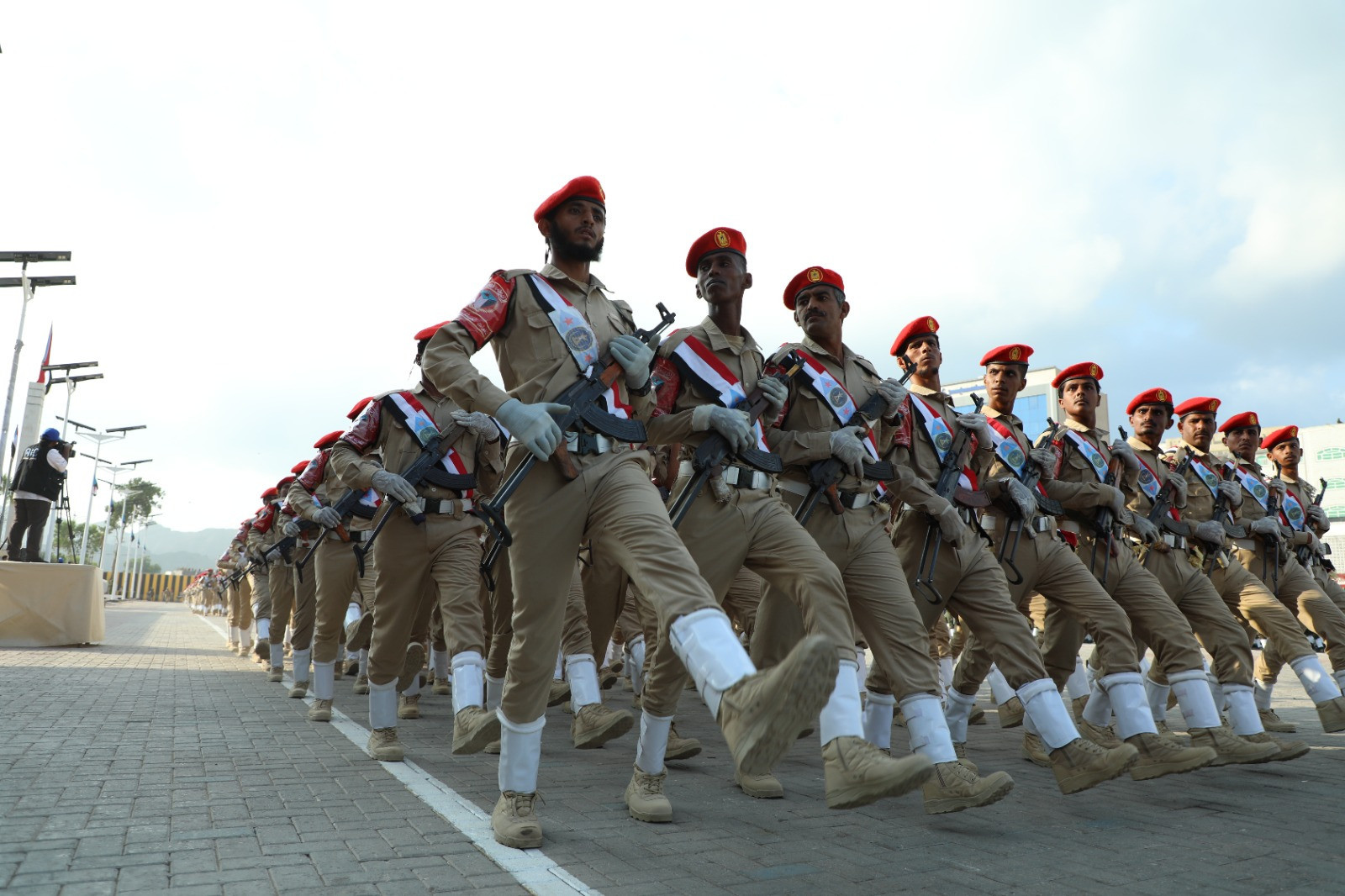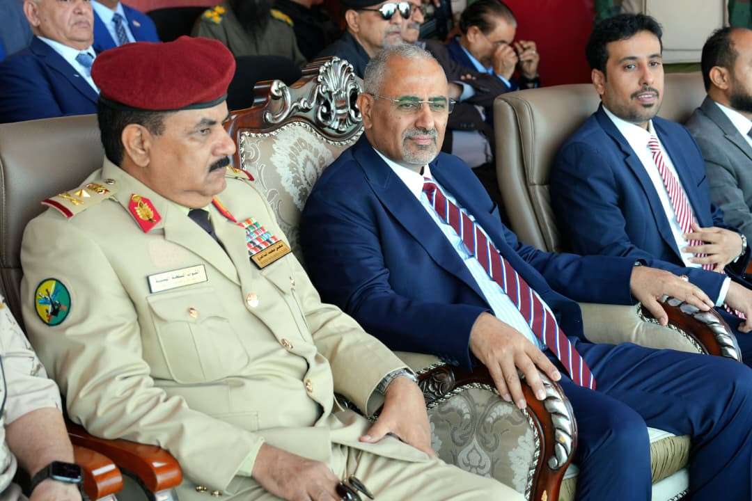 حضر العرض العسكري الأمين العام للأمانة العامة لهيئة رئاسة المجلس الانتقالي الأستاذ عبدالرحمن شاهر، ووزير الدفاع الفريق الركن محسن الداعري، وعضو هيئة الرئاسة ورئيس هيئة التشاور والمصالحة المساندة لمجلس القيادة الرئاسي محمد الغيثي، واللواء هيثم قاسم، عضو هيئة رئاسة المجلس الانتقالي، رئيس اللجنة العسكرية والأمنية العليا، واللواء صالح علي حسن رئيس العمليات المشتركة، واللواء علي البيشي قائد القوات البرية الجنوببة، إلى جانب عدد من أعضاء هيئة الرئاسة والوزراء في الحكومة، وقيادات عسكرية وأمنية وقيادات المجلس الانتقالي الجنوبي ومؤسسات الدولة.