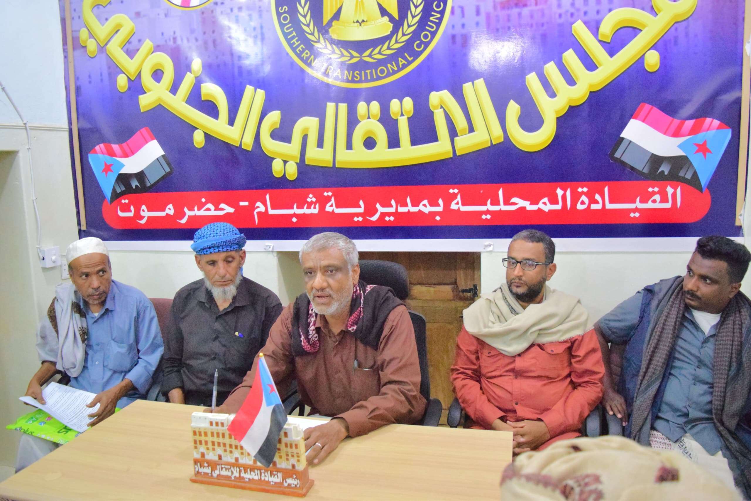التقى رئيس الهيئة التنفيذية للقيادة المحلية للمجلس الانتقالي الجنوبي في مديرية شبام بمحافظة حضرموت، علي قاسم بن طالب، يوم السبت، برؤساء اللجان المحلية للمجلس بمراكز المديرية، لمناقشة الترتيبات الخاصة بتشكيل لجان مجتمعية في الأحياء السكنية بالمديرية.