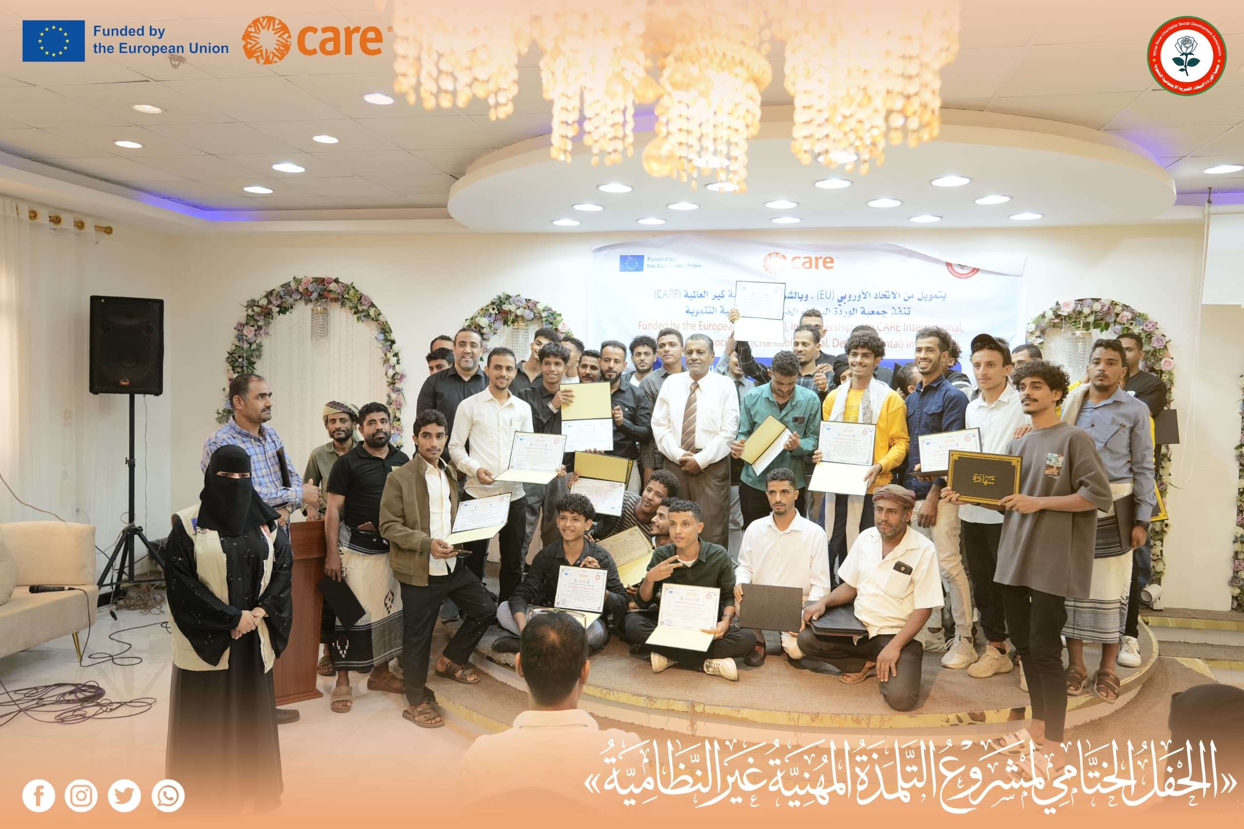 اختتمت جمعية الوردة البيضاء الخيرية الاجتماعية التنموية اليوم في العاصمة المؤقتة عدن مشروع "التلمذة المهنية غير النظامية" الذي تم تنفيذه بتمويل من الاتحاد الأوروبي وبالشراكة مع منظمة كير العالمية (CARE) هدف المشروع إلى تمكين 30 شابًا من مديرية البريقة عبر تزويدهم بمهارات حرفية متخصصة لتعزيز فرصهم في سوق العمل.