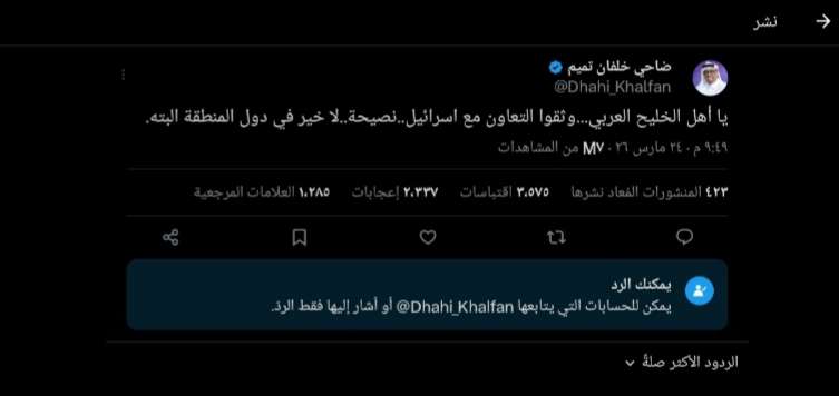 كما تداول مستخدمون تصريحات أخرى منسوبة إلى المسؤول الأمني السابق ضاحي خلفان، تحدث فيها عن أهمية تعزيز العلاقات مع إسرائيل، وهو ما ساهم في تصاعد النقاش.