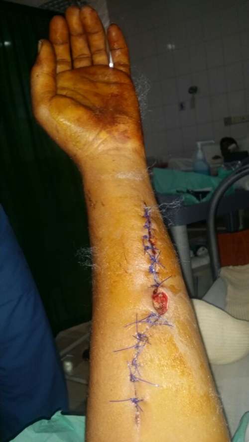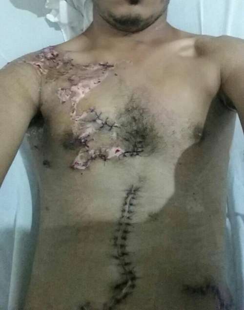 وكان الشاب المصاب محمد بابريك قد أصيب في العصب الأوسط لذراعه الأيسر، كما أصيب في بطنه بشكل مباشر بالإضافة إلى الجانب الأيمن من صدره، وأجزاء من فخذه الأيسر أيضا.